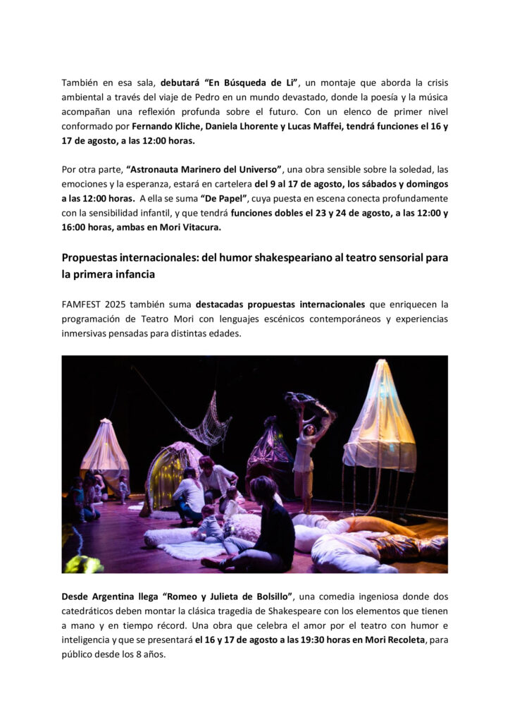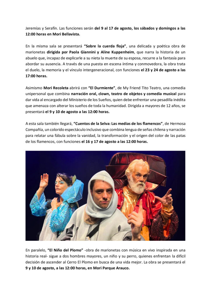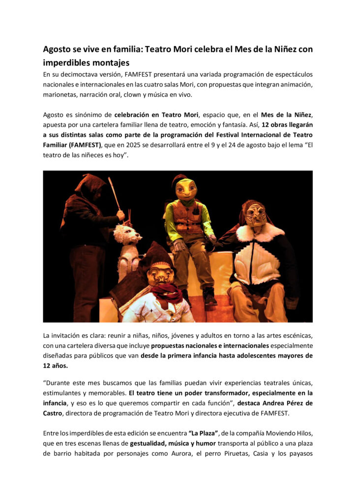 Llenando Vacíos “CARTELERA FAMILIAR DE AGOSTO”. Teatro Mori Sebastián Novajas agosto 5, 2025 No hay comentarios
